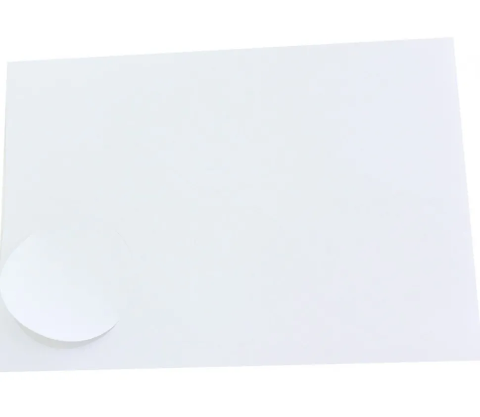 Etiquettes rondes autocollantes de 85 mm de diamètre blancs pour personnaliser vos dés neutres, pions ou palets de jeux…. Etiquette blanche adhésive à imprimer.