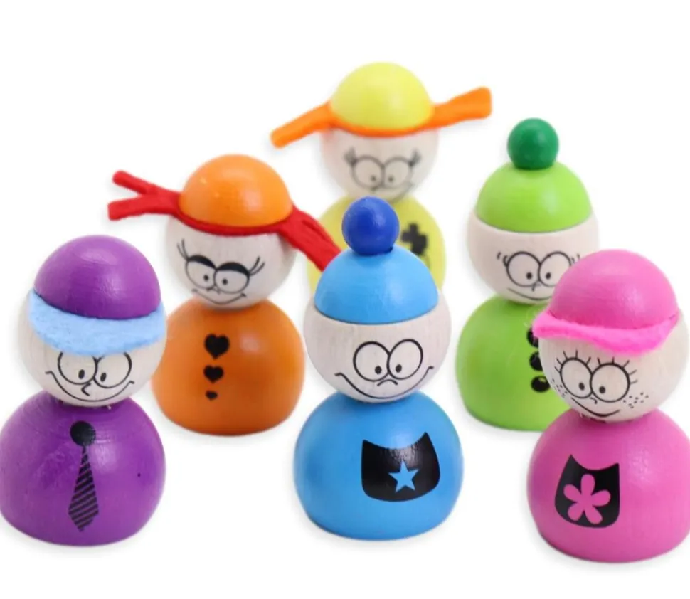 Ces 6 pions joueurs « Amis Sympathiques » en bois apportent une touche ludique et colorée à vos jeux de société.