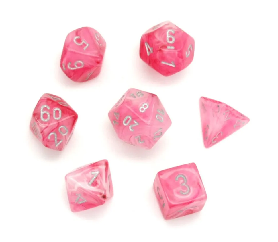 Dé à jouer de qualité chessex : Ghostly glow pink/silver référence 27524