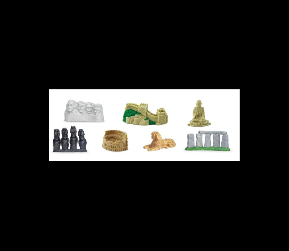 7 monuments du monde figurines. Voyagez à travers ces monuments miniatures : la grande muraille de Chine, le Sphinx, Le Colisée… Pièces de jeu d’environ 6 cm. Faire le tour du monde avec mini jouets. Idéal pour l’apprentissage. Livré dans un tube de rangement. Taille miniature peut aussi servir de décoration. Il existe une autre série de monuments avec Tour Eiffel, Tour de Pise…