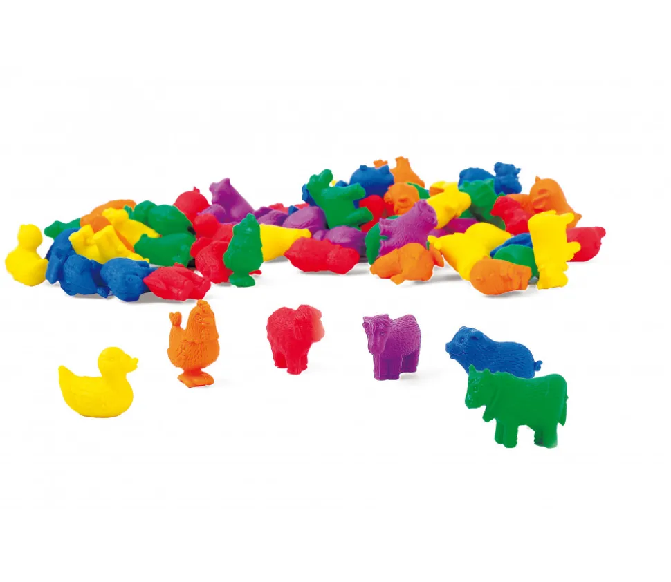 72 animaux de la ferme (6 sortes en 6 couleurs : rouge, vert, jaune, bleu, violet et orange le tout en double). Ces animaux en plastique vous permettent de faire des classements, des tris, du comptage et de nombreux exercices mathématiques de manière ludique. Amusant à manipuler, ces petits animaux rendent l’apprentissage plus facile.
