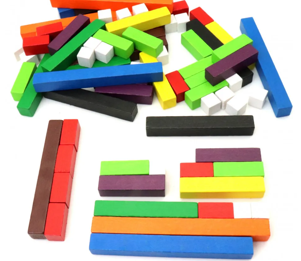 La répartition des réglettes, plus de petites tailles que de grandes (voir le détail dans le descriptif complet) vous permet de réaliser de nombreux calculs mathématiques.