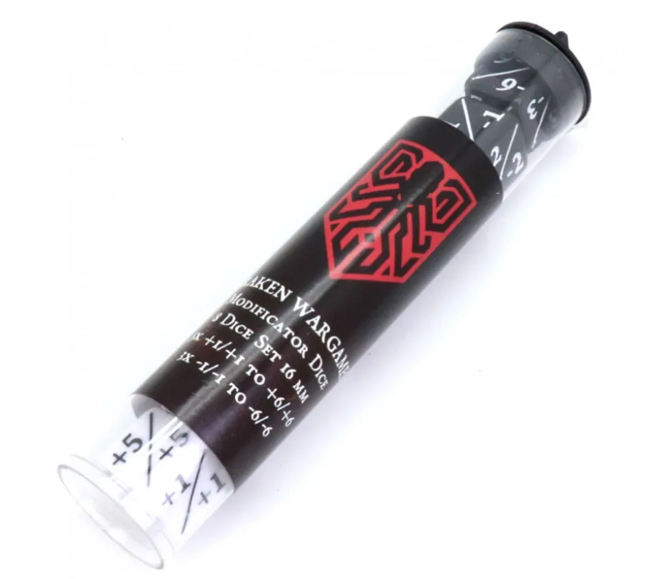 Tube de 8 dés D6 positif/négatif Kraken Wargames Dice contenant 5 dés positifs et 3 dés négatifs.