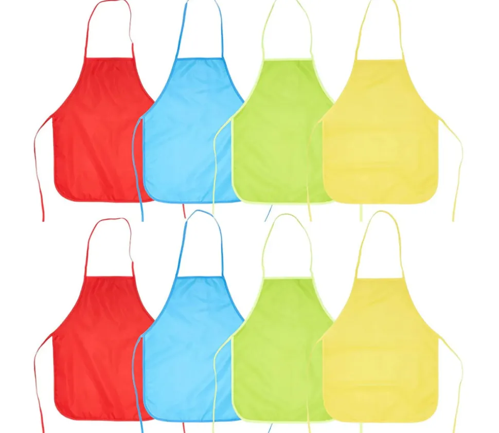 Set de 8 tabliers pour vos activités créatives, cuisine ou autres activités manuelles avec les enfants.