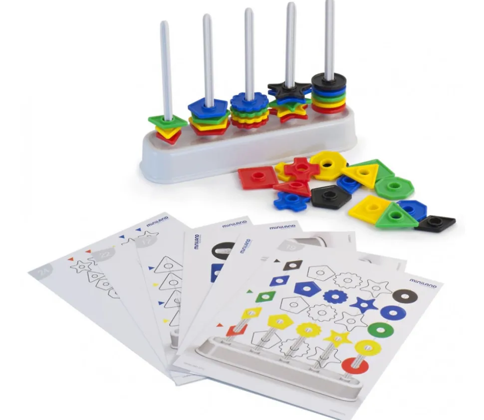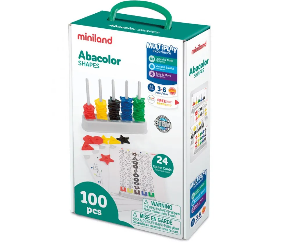 Abacolor shapes. Socle abaque pour enfiler différentes formes et couleurs. Matériel STEM d’aide à l’apprentissage des mathématiques.