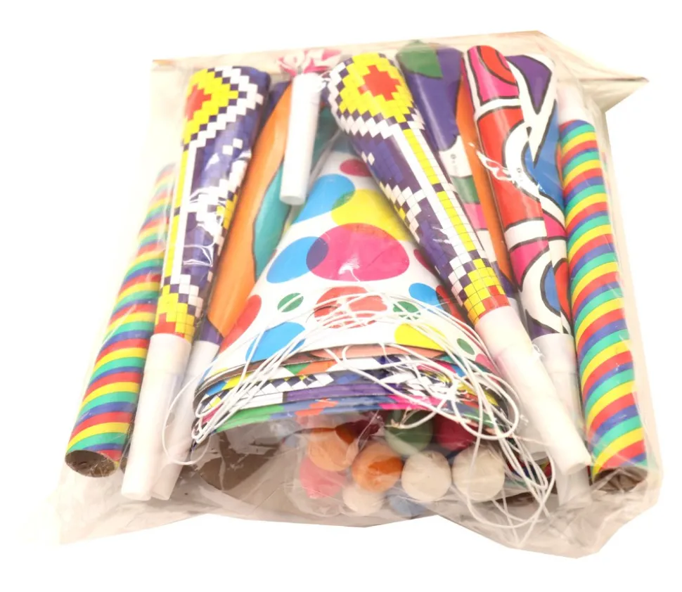 Set pour faire la fête. Couleurs festives mises au hasard et variant d’un sachet à l’autre.