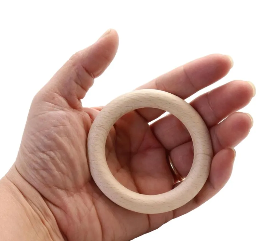 Le diamètre des anneaux en bois est de : 7 cm à l’extérieur (diamètre intérieur de 4.8 cm). Épaisseur de 10 mm