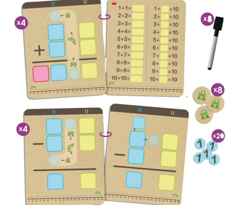 Ce kit d’aide à l’apprentissage des additions et soustractions contient :