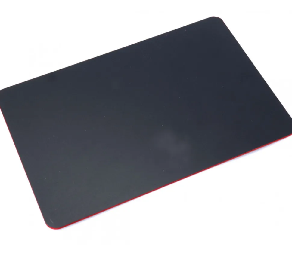 Jolie ardoise noire bordée d’un liseré rouge. Belle ardoise recto/verso. Une face neutre et 1 face avec un grille tableau.