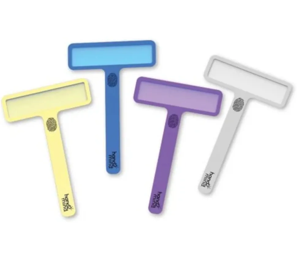 Bague à fixer sur le doigt de l’enfant. Surligneur assistant de lecture avec un espace à l’intérieur qui permet à l’enfant de maintenir son regard uniquement sur la ligne qu’il est en train de lire. Aide à la lecture, cet accessoire permet ne pas se perdre dans les lignes. Baguette focus aide à la lecture de 7.5 x 5 cm. Apprendre à lire plus facilement. Matériel d’aide pédagogique. Cette bague légère permet à l’enfant d’avoir une aide au bout du doigt qui lui permet de mettre en avant clairement les mots qu’il doit lire. Vente à l’unité de la bague fournie avec 4 surligneurs colorés : 1 bleu, 1 jaune, 1 violet et 1 blanc.