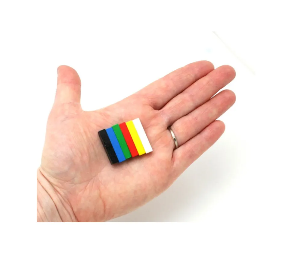 Allumette bûchette en bois 25 x 5 x 5 mm. Pions baguettes en bois pour vos jeux. Petites briquettes réaliser de nombreuses, constructions, des chemins, des barrières. 6 couleurs disponibles. Convient aussi très bien pour le rangement des compléments à 10, route pour les jeux, mini construction en équilibre. Vente à l’unité.