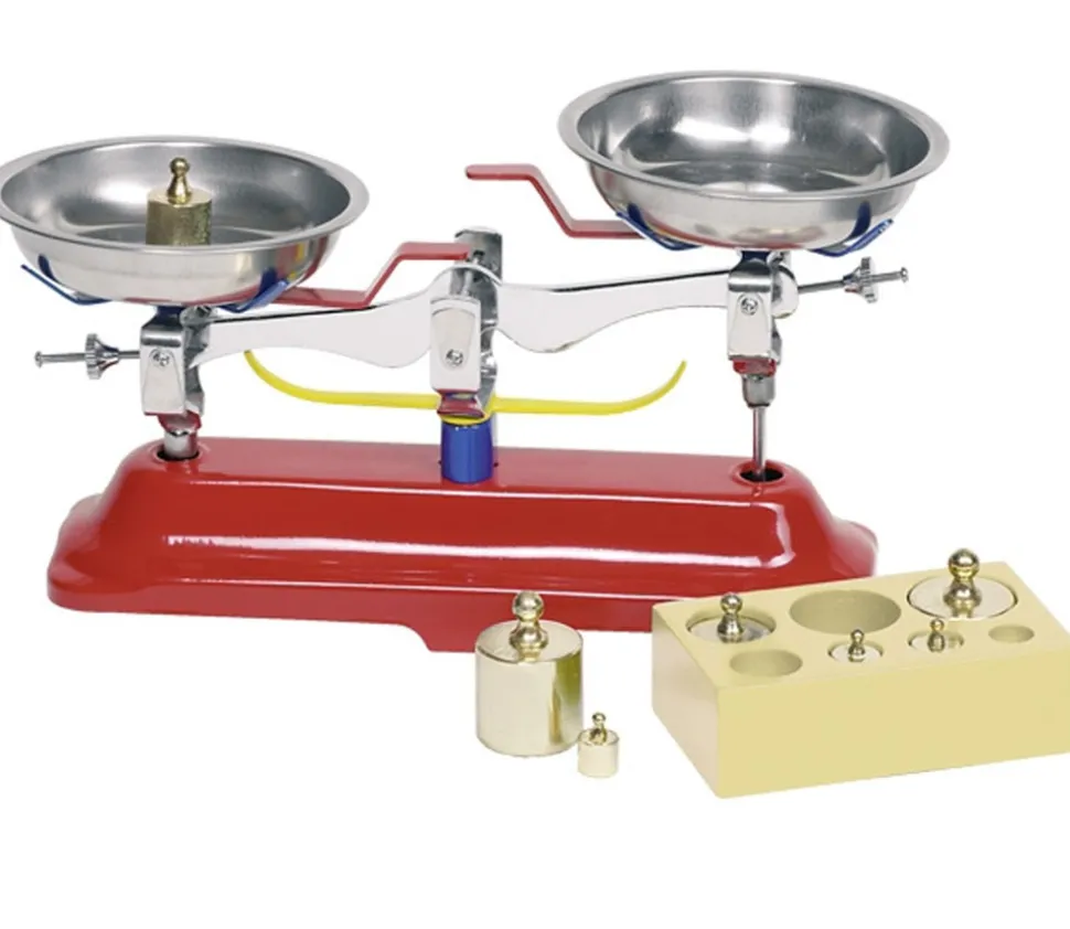 Balance 2 plateaux avec poids pour enseignement à l’école.