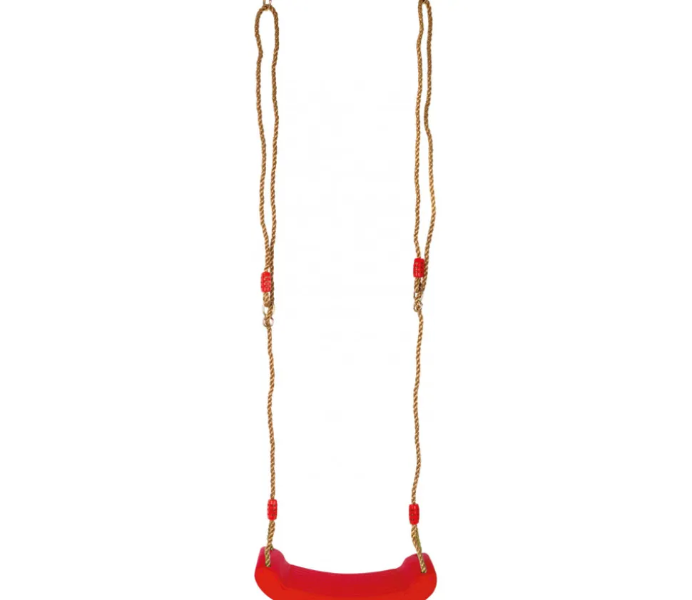Balançoire rouge en plastique à fixer sur le portique.