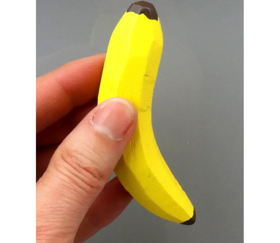 Banane en bois teintée en jaune. Pièces idéales pour jeu de la marchande, jeux de société géants, jeux d’imitations, découverte des fruits et légumes, décorations en bois ou autres. Vente de ce jouet à l’unité. Très belle qualité, belle imitation.
