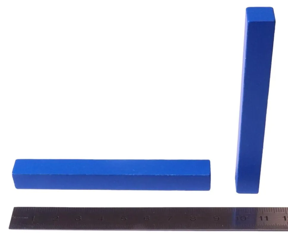Réglettes en bois de 9 cm. Bâtonnet en bois coloré bleu de 9 cm de long. Tige de 90 x 10 x 10 mm.