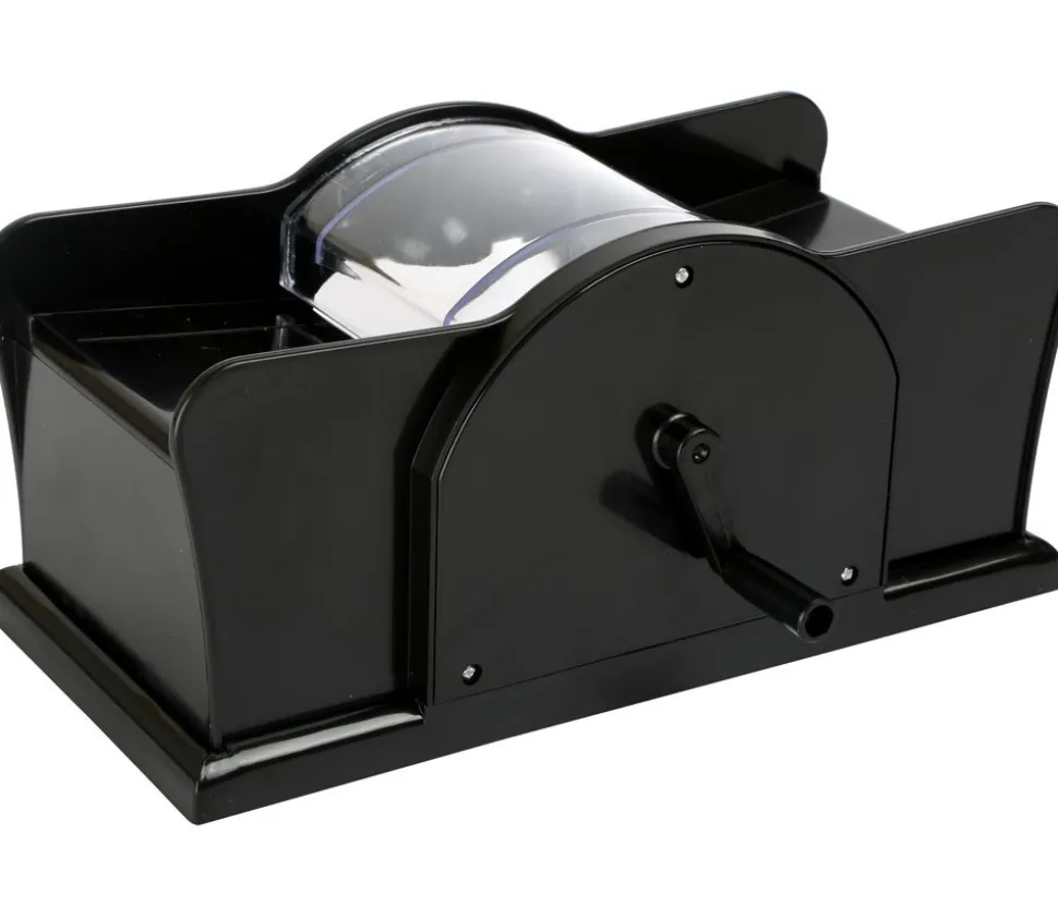 Batteur des cartes manuel. Pas besoin de piles donc ne tombe pas en panne…