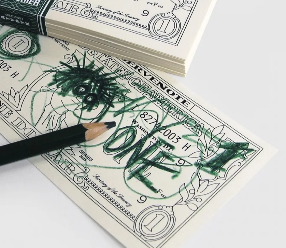 Bloc note billets de 100 dollars.