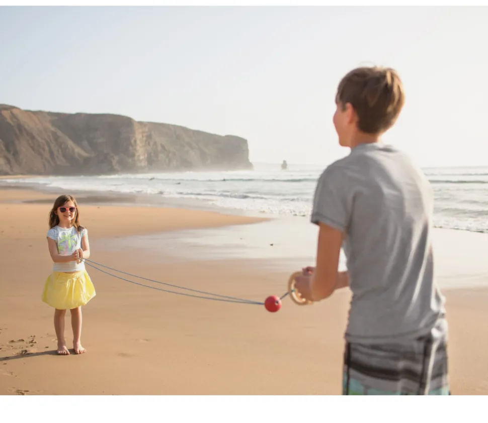 Il fait travailler les bras tout en s’amusant en renvoyant la balle à son partenaire sans risque de la perdre ou de l’envoyer à l’autre bout de la cour !
