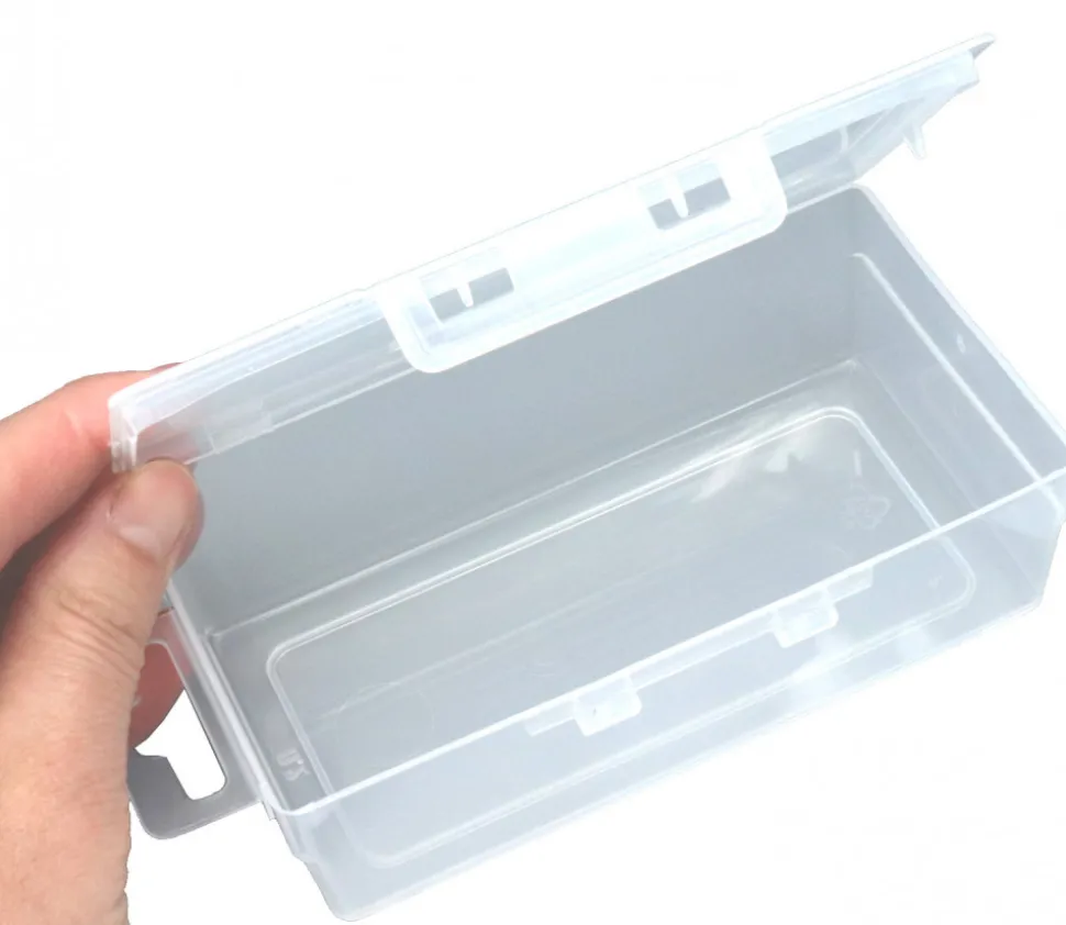 Boite plastique vide pour ranger vos accessoires de jeux (taille idéale pour ranger un jeu de tarot ou 1 jeu de 54 cartes des différents accessoires). Pratique pour ranger pion de jeux, cartes à jouer, dés, sabliers… Dimension boite transparente : 130 x 76 x 42 mm (dimension intérieure : 118 x 58 x 33 mm – attention angles un arrondis). Boite plastique transparente vide avec couvercle intégré pour ranger matériel de jeux et accessoires éducatifs.
