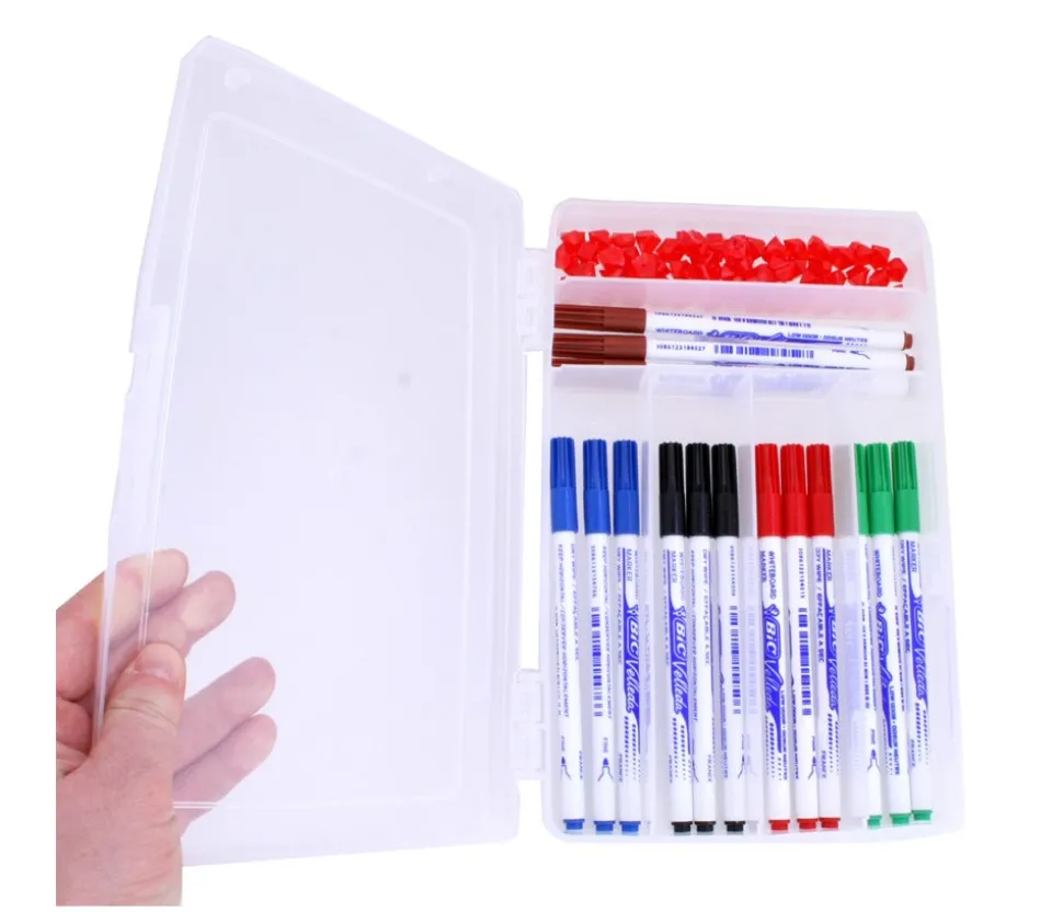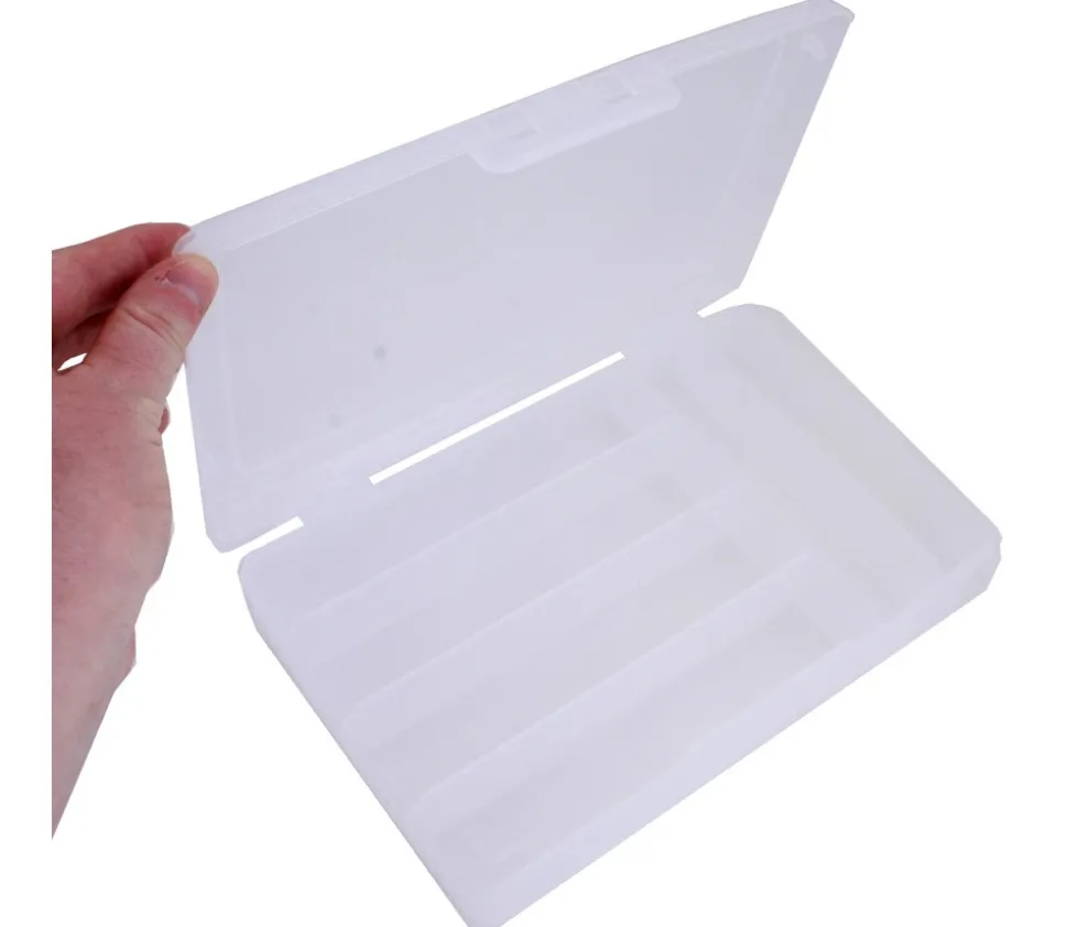 Boite en plastique transparente vide pour ranger vos accessoires de jeux divers. Petite boite pour votre matériel éducatif. Super pratique, cette petite boite de 24.5 x 16.5 cm avec 6 casiers pour le rangement en classe, à la maison ou en formation. Boite avec couvercle rigide en plastique semi translucide avec clips de fermeture. Livrée vide.