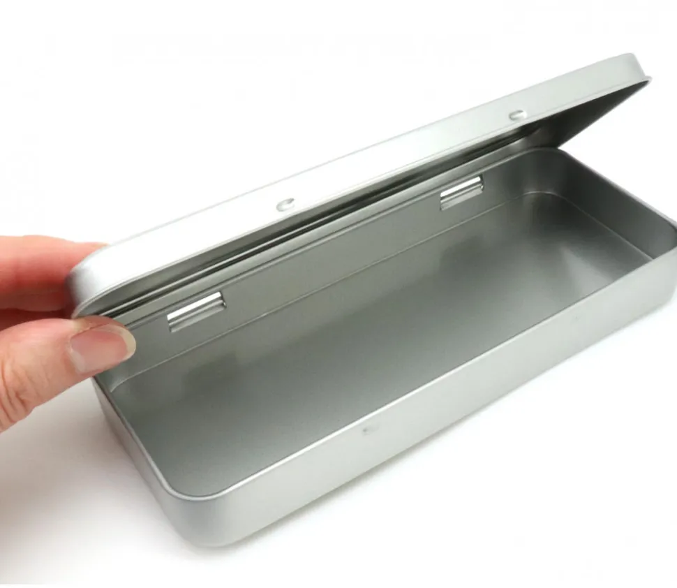 Dimensions extérieures de la boite en métal : 18 x 7.7 x 2.2 cm.