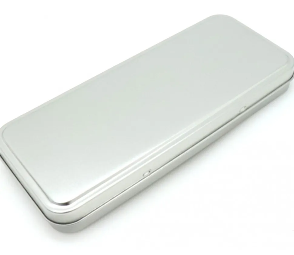 Boite en métal vide, porte plume de 180 x 77 x 22 mm