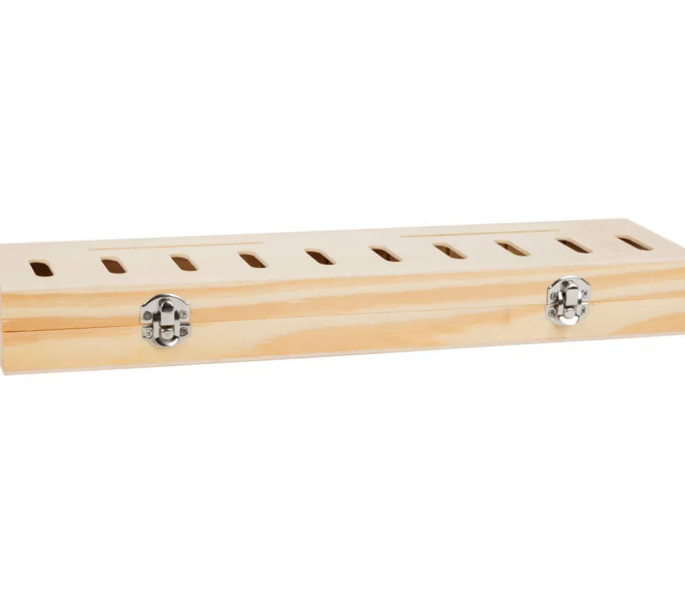 - 1 boite en bois naturel avec charnières et clapet de fermeture – dimensions 39.7 x 9.8 x 4.6cm