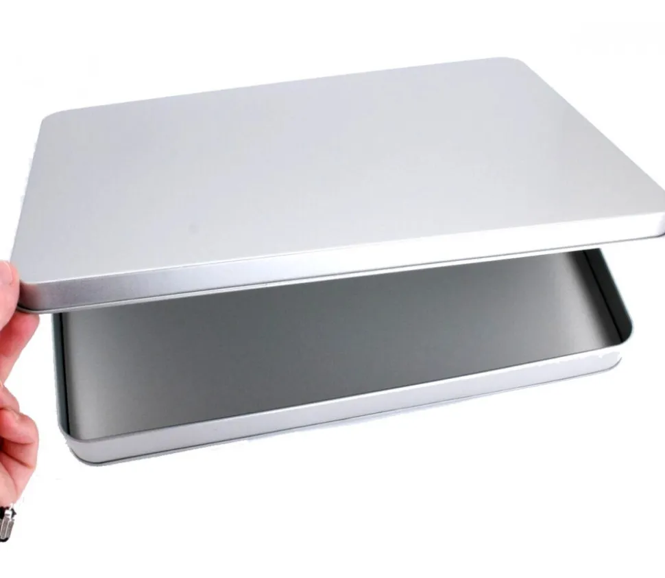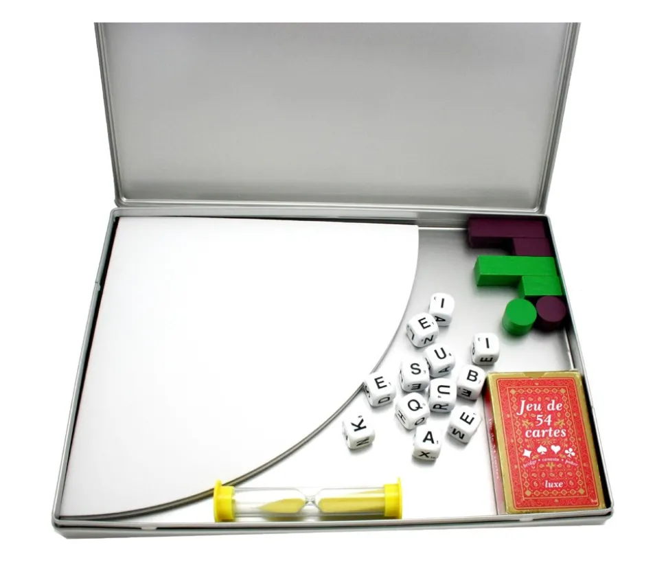 Boite de jeu en métal neutre pour rangement jeux.