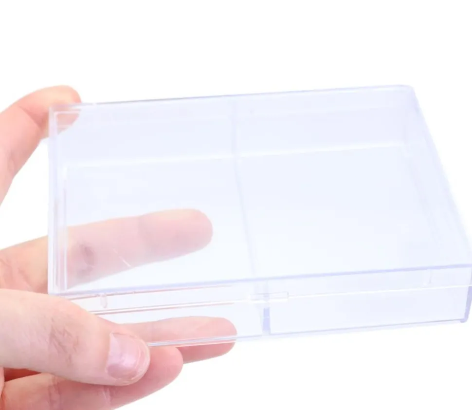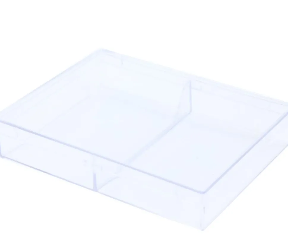 Boite en plastique vide pour ranger 2 jeux de cartes personnalisées ou des petites pièces de jeux comme des pions ou des dés.