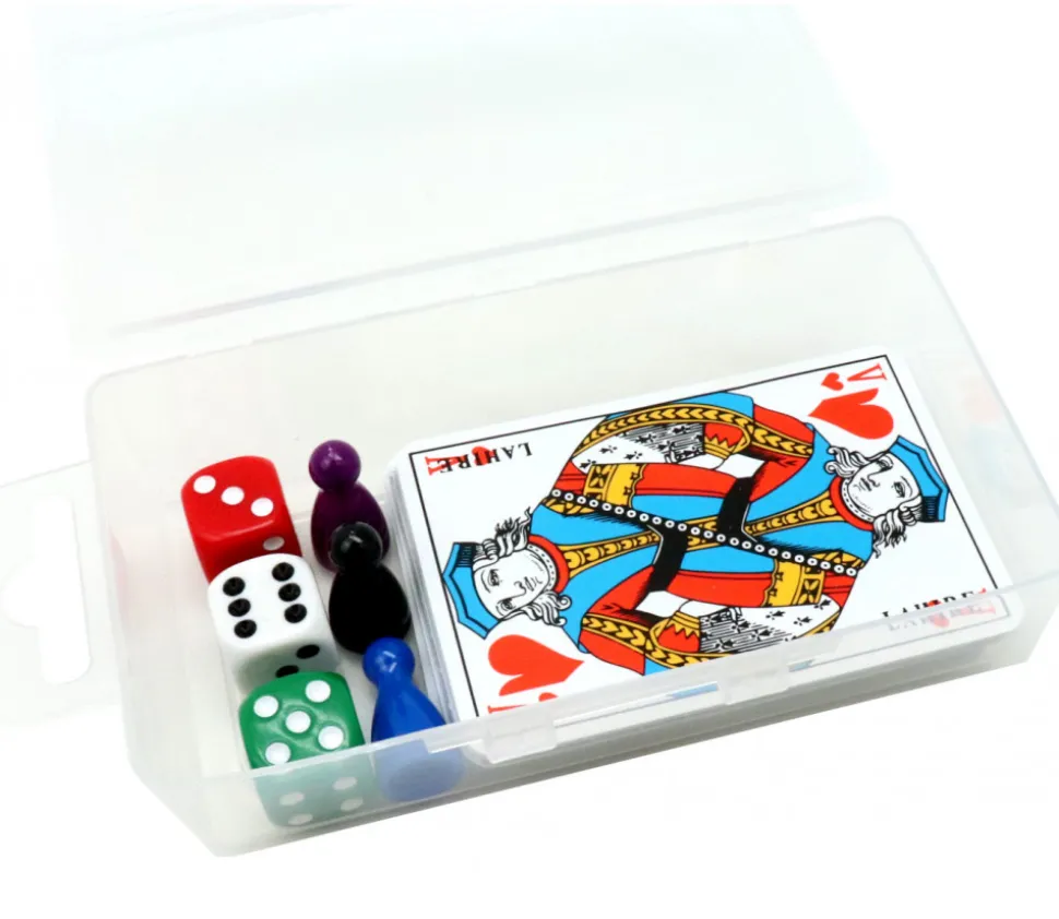 Boite plastique vide pour ranger vos accessoires de jeux (taille idéale pour ranger 1 jeu de tarot ou un jeu de 54 cartes avec différents accessoires). Pratique pour ranger pion de jeux, cartes à jouer, dés, sabliers… Dimension boite transparente : 130 x 70 x 30 mm (dimension intérieure : 120 x 60 x 28 mm – attention angles un arrondis). Boite plastique transparente vide avec couvercle intégré pour ranger matériel de jeux et accessoires éducatifs.