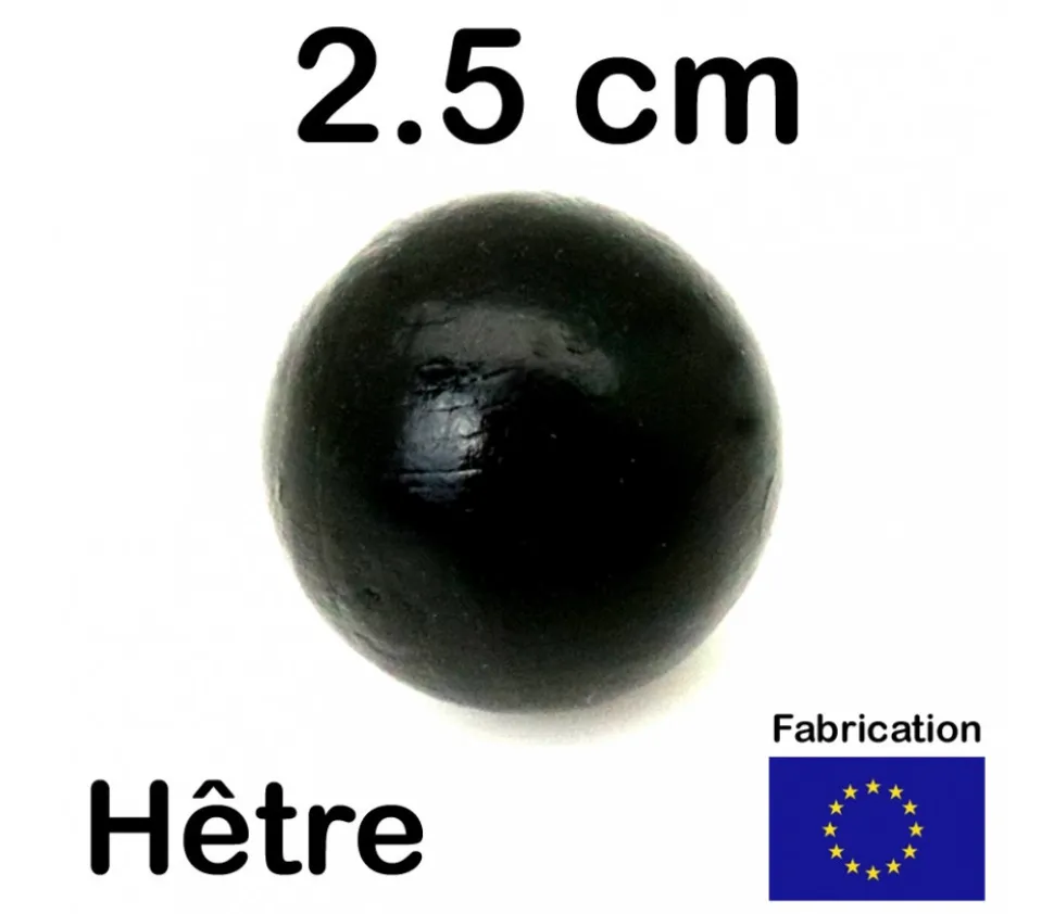 Boule en bois noire de 25 mm de diamètre. Achat de boules hêtre ou billes en bois à l’unité ou par lot. Boules non percées pour vos jeux. Boule teintée en noire de 2.5 cm. Boule ronde pour vos jeux de balles.
