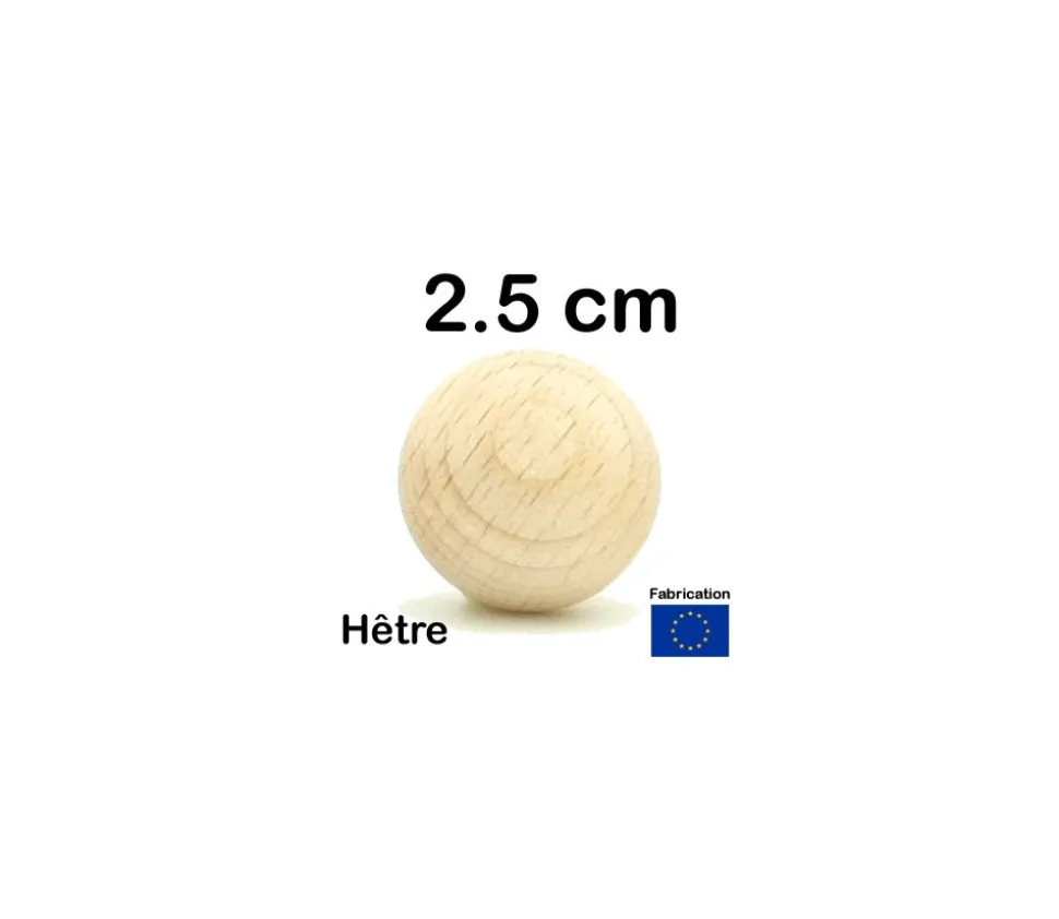 Boule en bois hêtre naturel de 25 mm de diamètre. Achat de boules ou billes en bois à l’unité ou par lot. Boules non percées pour vos jeux avec un diamètre de 2.5 cm. Boule ronde en bois pleine.