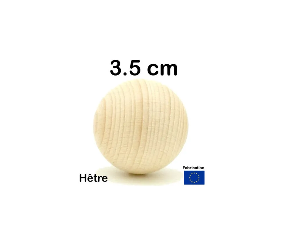 Boule en bois hêtre naturel de 35 mm de diamètre. Achat de boules ou billes en bois à l’unité ou par lot. Boules non percées pour vos jeux.