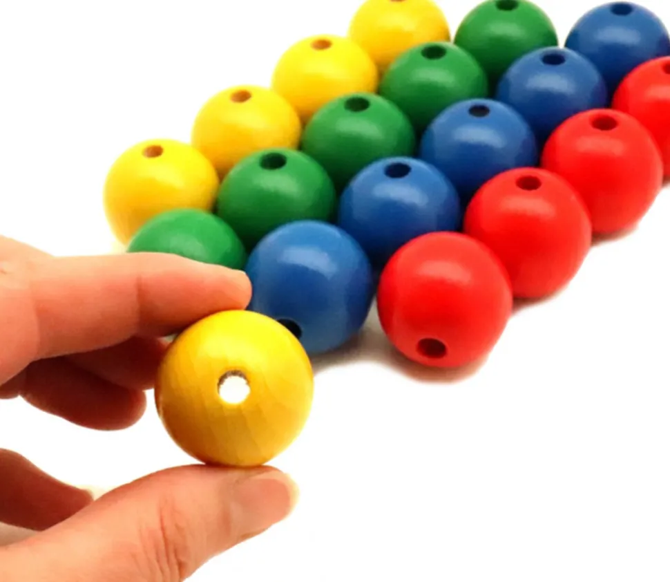 Perle de grandes dimensions facile à enfiler pour les enfants avec un trou assez grand pour y passer des lacets pour faire des colliers algorithmiques, des abaques ou créations originales.