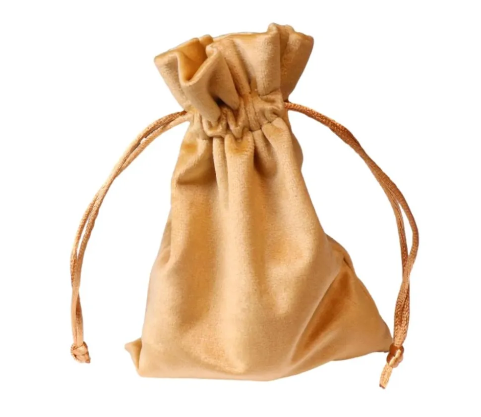Bourse velours épais beige pour rangement accessoires de jeux ou petits articles.