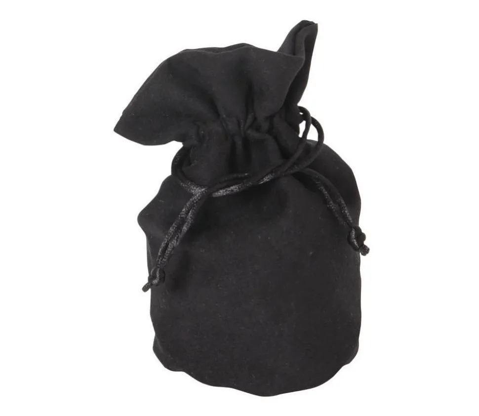 Cette bourse en velours noir, de taille standard (165 x 125 mm), allie élégance et fonctionnalité.