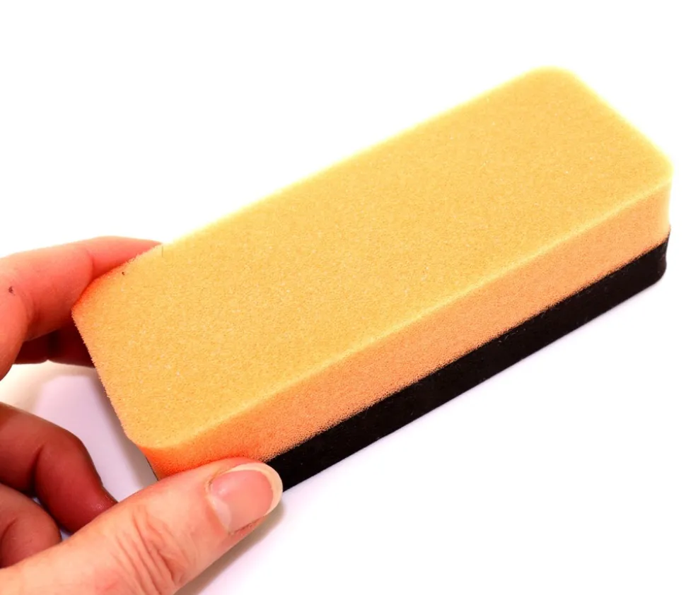 Matière cet effaceur : mousse absorbante orange et mousse noire compacte rigide.