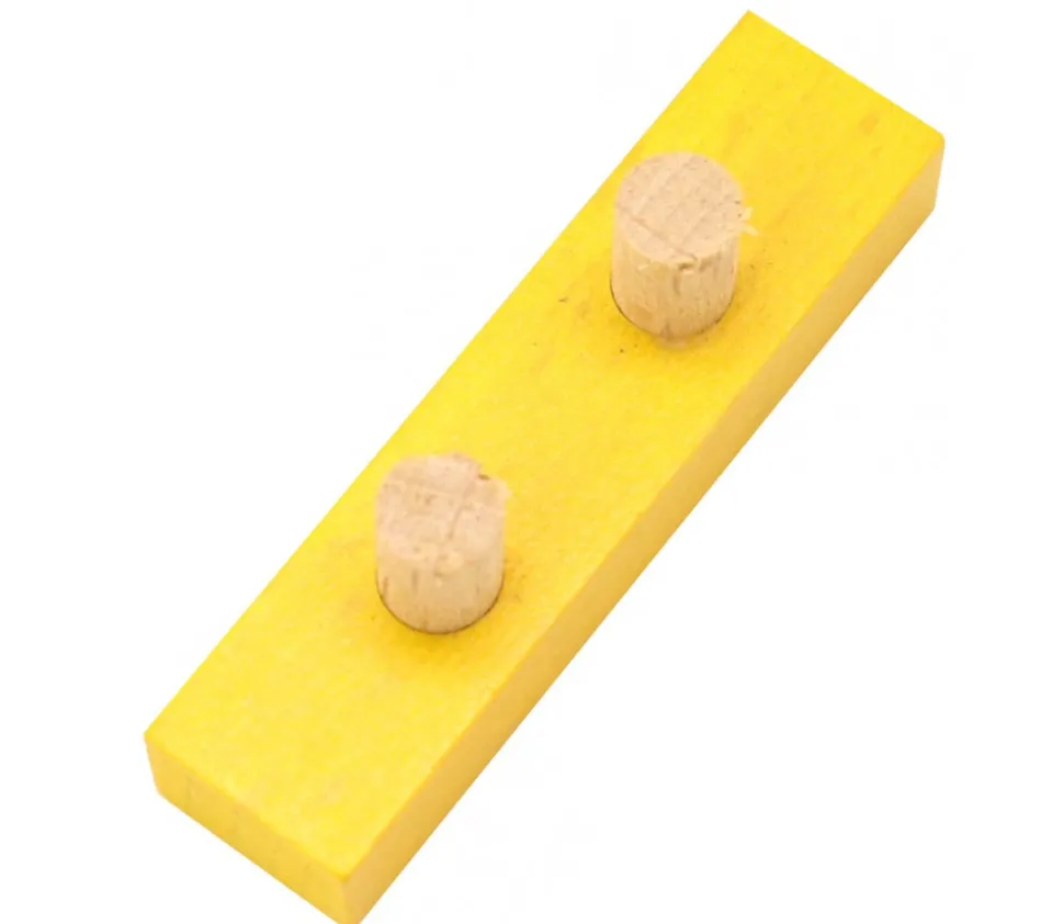 Bûchette jaune avec tiges en bois pour jeu de société teintée en jaune de 4.8 cm de longueur et 1.2 cm de largeur et 0.8 cm d’épaisseur avec 2 pices de 6 mm de diamètre et 1.2 cm de hauteur.