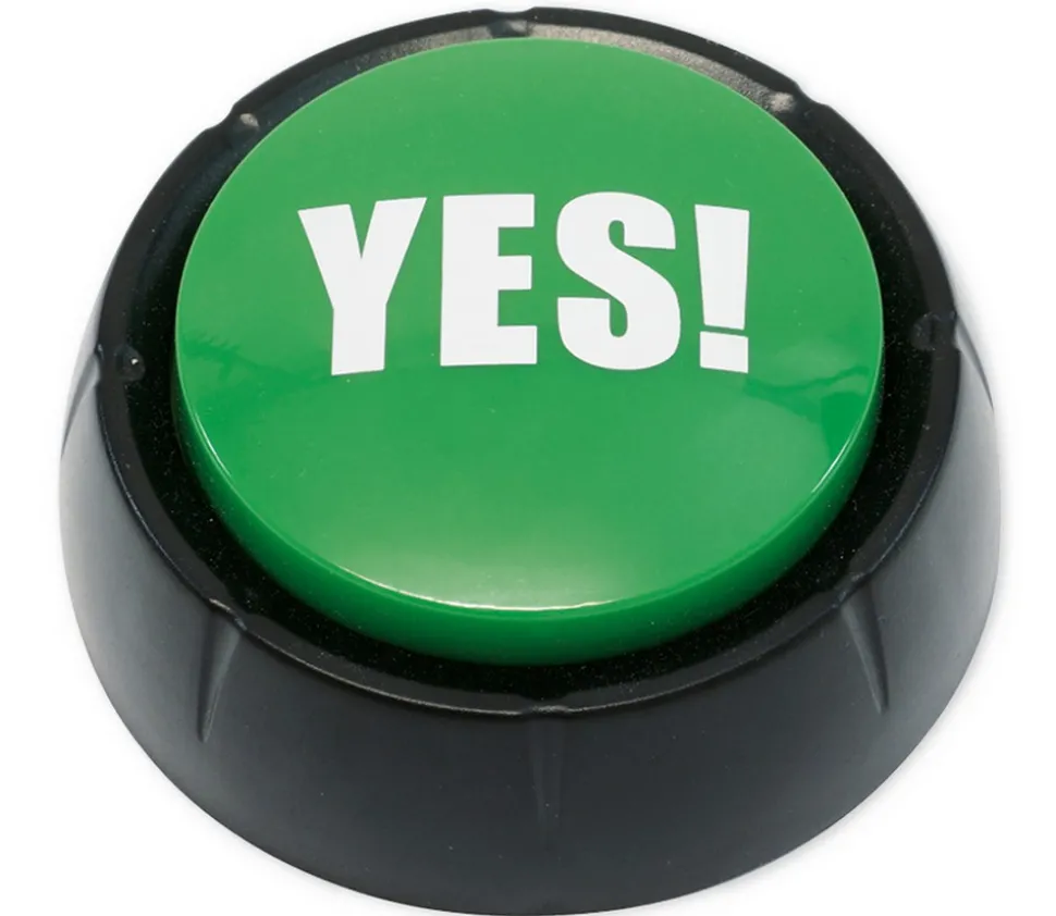Buzzer électronique qui dit « yes ». Amusant pour vos jeux de questions et quizz.