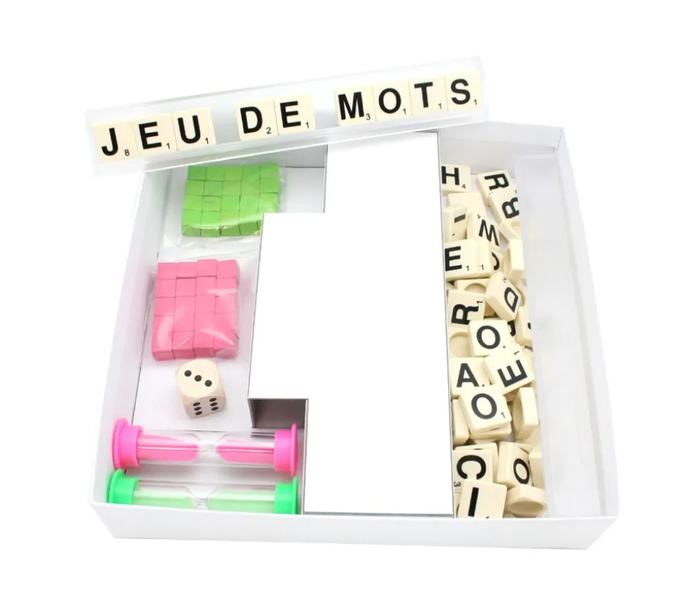 Boite blanche livrée avec base, couvercle et calage intérieur (les autres accessoires comme les pions, cartes et dés sont vendus séparément.