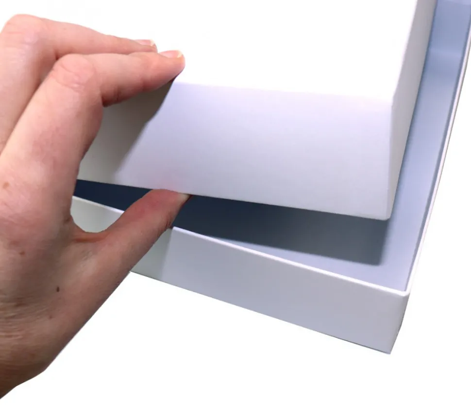 Boite de jeu cartonnée blanche grand format. Couvercle télescopique.