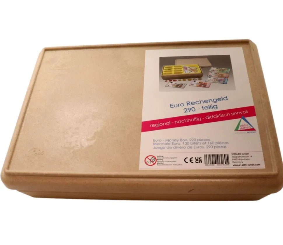 Boite avec monnaie factice – 290 pièces en Re-plastique et billets. Super pratique, cette petite valise de 23 x 20 cm possède 9 compartiments pour ranger vos billets et pièces. Ce set pièces d’euros et faux billets euro est composé de 160 Pièces en -Re-plastique et 130 billets en jouet pour jouer à la marchande, utiliser comme monnaie dans vos jeux ou apprendre les bases de calcul…
