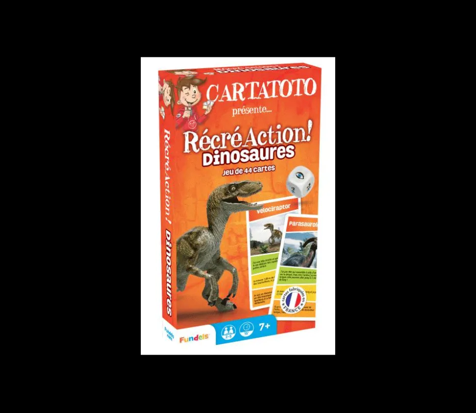 Récréaction cartatoto Dinosaures : Jeu de Cartes sur les dinosaures. Pour les fans de dinosaures. En apprendre encore plus sur les dinosaures et leur caractéristiques avec ce jeu de cartes. Jeu de société éducatif, il permet de servir de support de base à l’apprentissage.