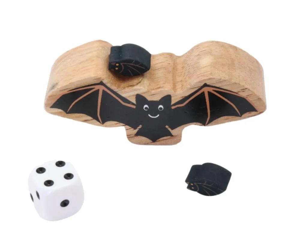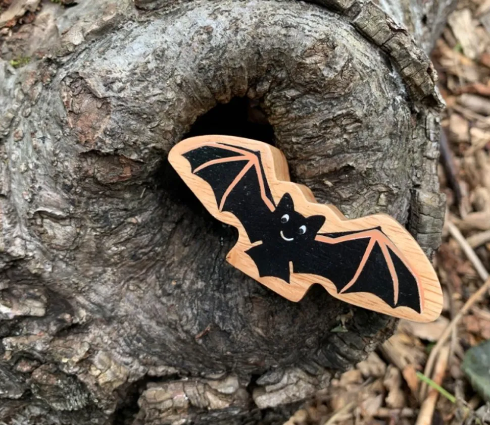 Dimensions du pion chauve-souris en bois peinte en noir : 8.5 x 3 x 2.4 cm