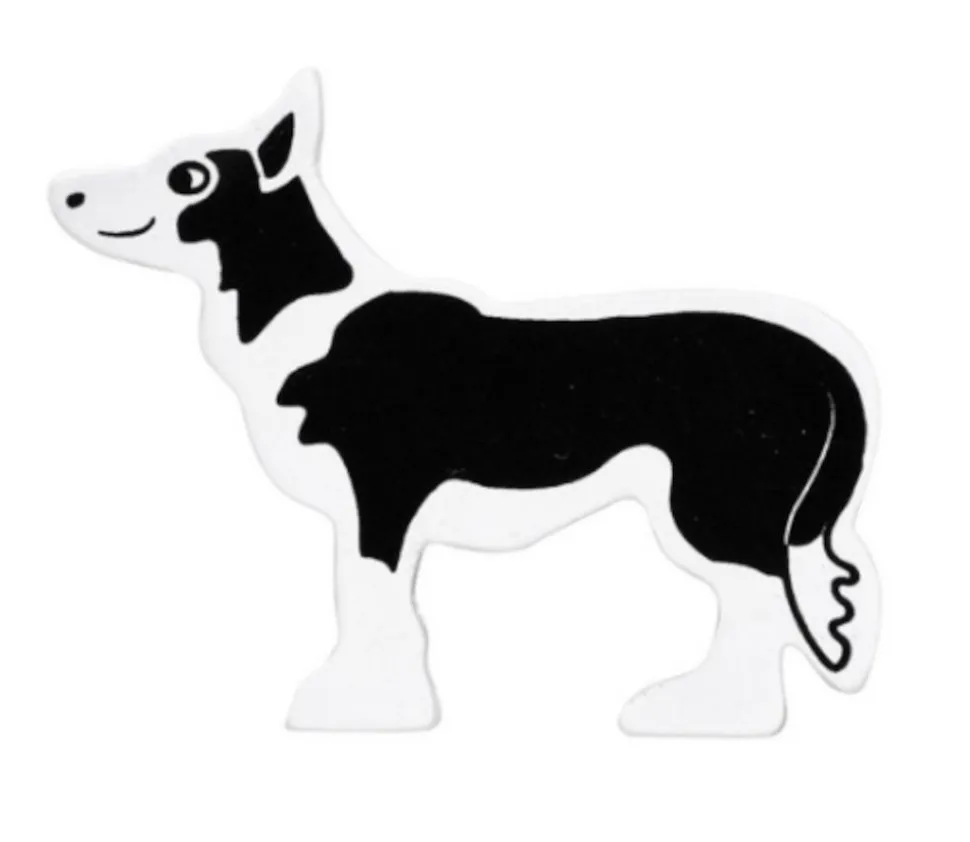 Bois MDF peint. Pion de jeu vendu à l’unité. Jouet chien noir et blanc en bois peint. Jouet pour ferme miniature ou pion sur plateau de jeux de société thématique.