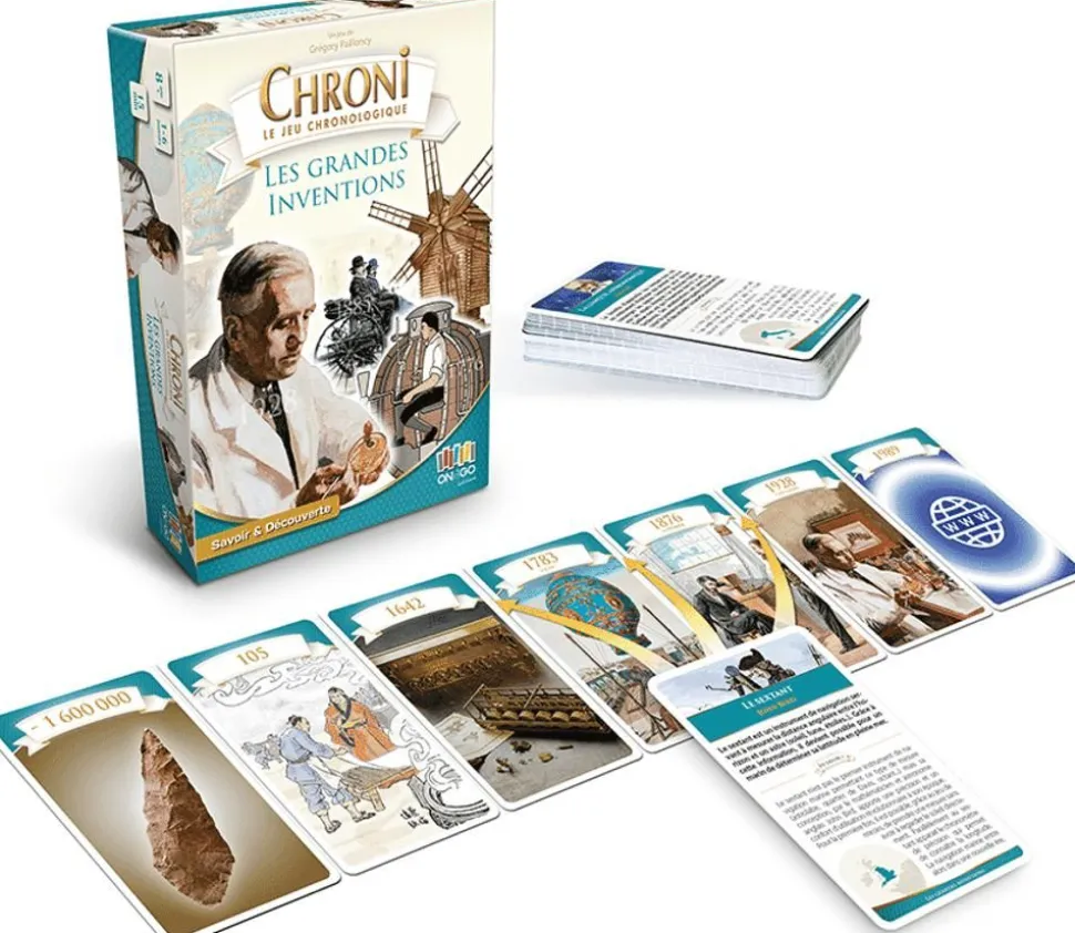 Jeu Chroni Les grandes inventions de Grégory Pailloncy. Un jeu idéal pour travailler sa culture générale. Matériel éducatif sur les inventions. Parascolaire. Ancienne collection des Chronicards.