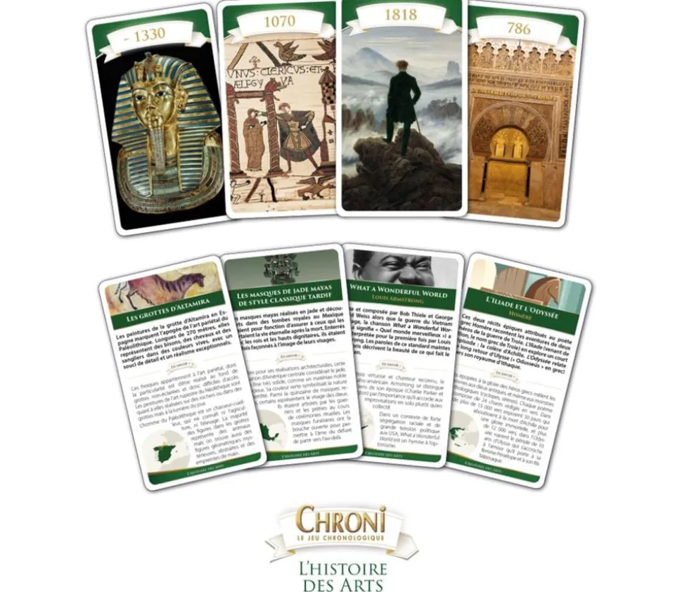 Jeu Chroni Histoire des arts de Grégory Pailloncy. Matériel éducatif sur l’histoire et la culture. Parascolaire. Ancienne collection des Chronicards.