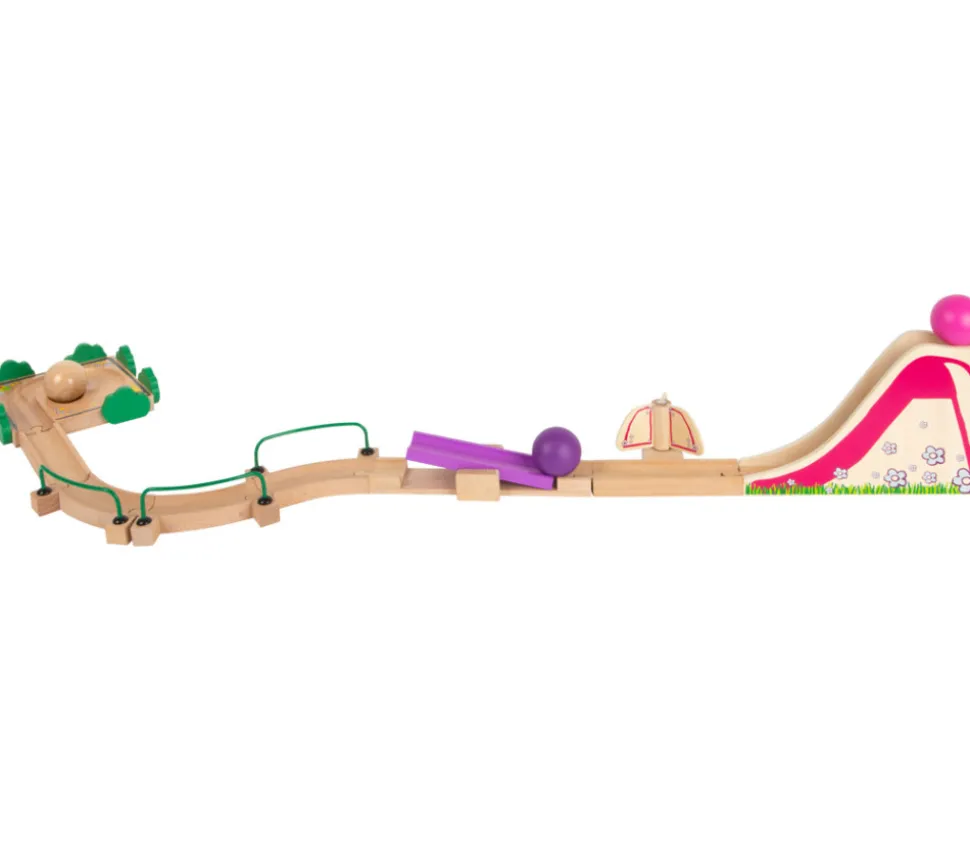 Circuit á boules en bois avec éléments modulaires flexibles sur le thème de l’aire de jeux