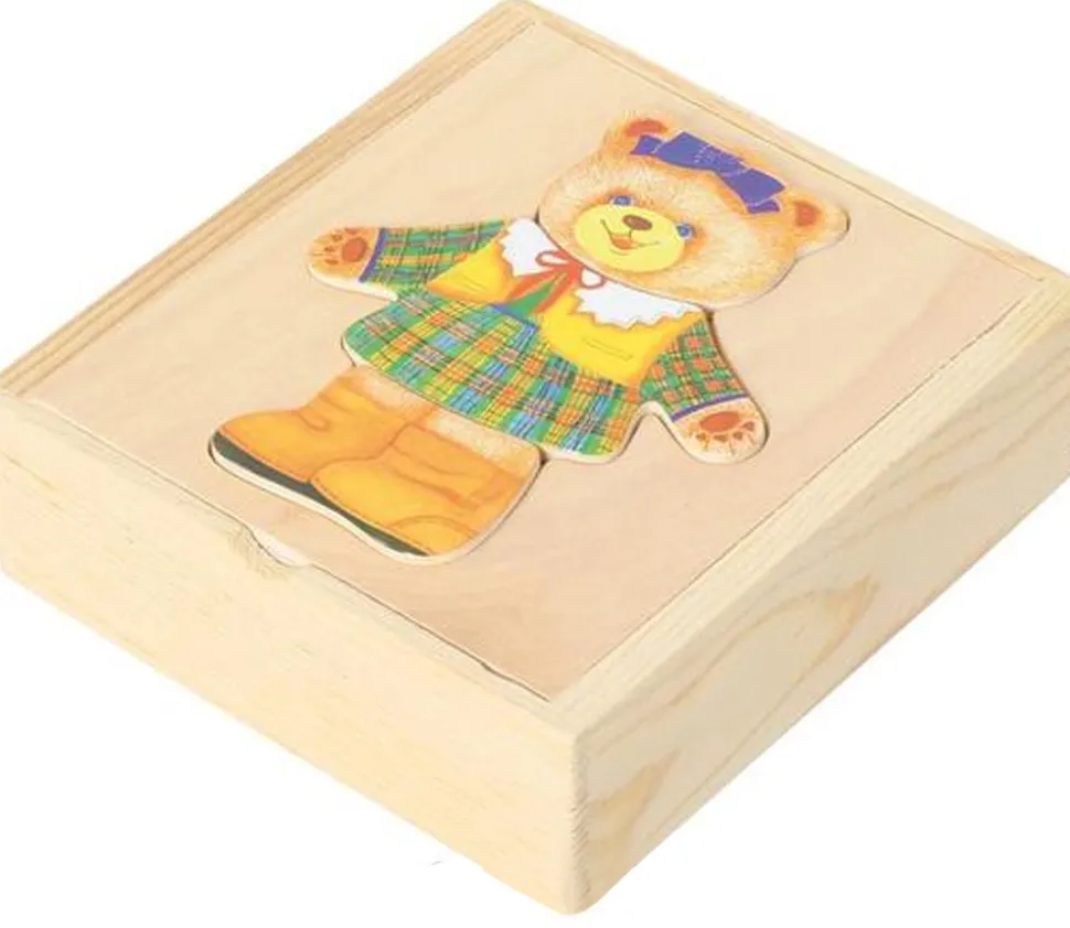 Découvrez le Coffret en bois puzzles oursons à habiller, un jeu éducatif et créatif parfait pour les enfants.