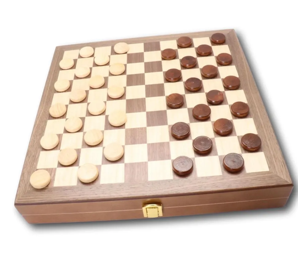 Coffret de jeux en bois 3 en 1 : jeu d’Echecs, jeu de Dames et jeu de Backgammon inclus